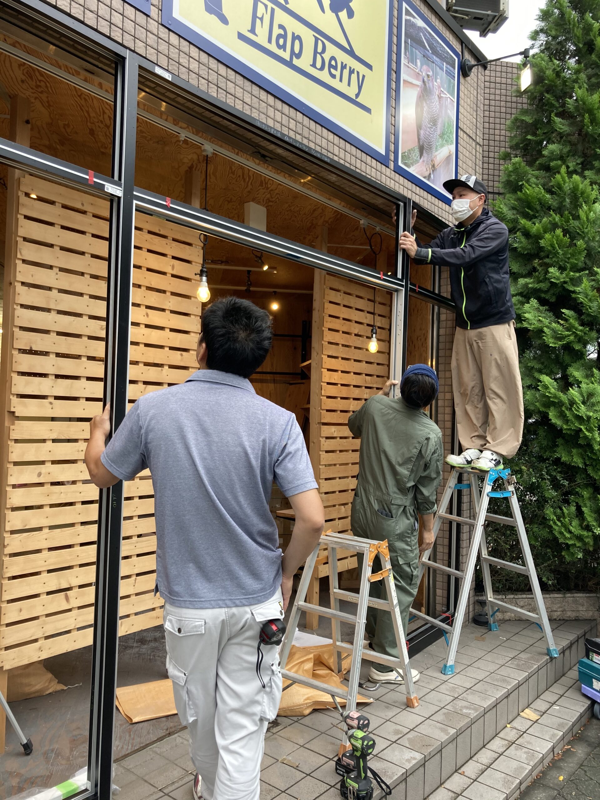 全面ガラスの大型サッシュを取り付けました。